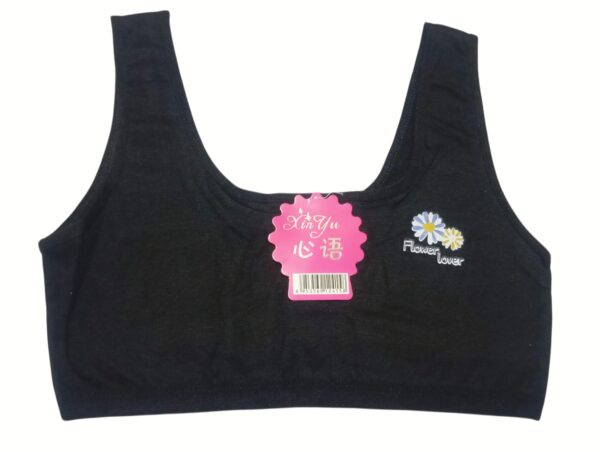 Crafted from a breathable cotton blend, this teenage camisole bra offers gentle support with a stylish touch. Featuring thin straps and a crop-top style cut, it sits comfortably under any outfit while allowing ease of movement. The embroidered “Flower Lover” motif adds a playful, youthful charm, making it more than just an everyday essential. Available in versatile colors — black, white, pink, and mustard — it’s designed to suit different moods and outfits. Perfect for teens starting their lingerie journey, this bra combines comfort, durability, and a touch of personality.