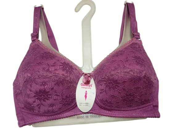 Discover elegance and comfort with the Galaxy® Purple Lace Light-Padded Bra (Article: 62097). Crafted with delicate floral lace, this bra enhances femininity while offering a smooth, flattering silhouette under any outfit. The light padding provides gentle shaping, giving the bust a naturally beautiful contour without extra bulk. Designed with adjustable straps for a customized fit, it ensures all-day comfort whether you’re dressing up or keeping it casual. The soft fabric and thoughtful construction make this bra a perfect blend of style, support, and ease — a must-have piece for your lingerie collection.