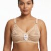 Beautiful lace bra with floral detailing, semi-transparent cups, and adjustable straps for a supportive yet elegant fit.