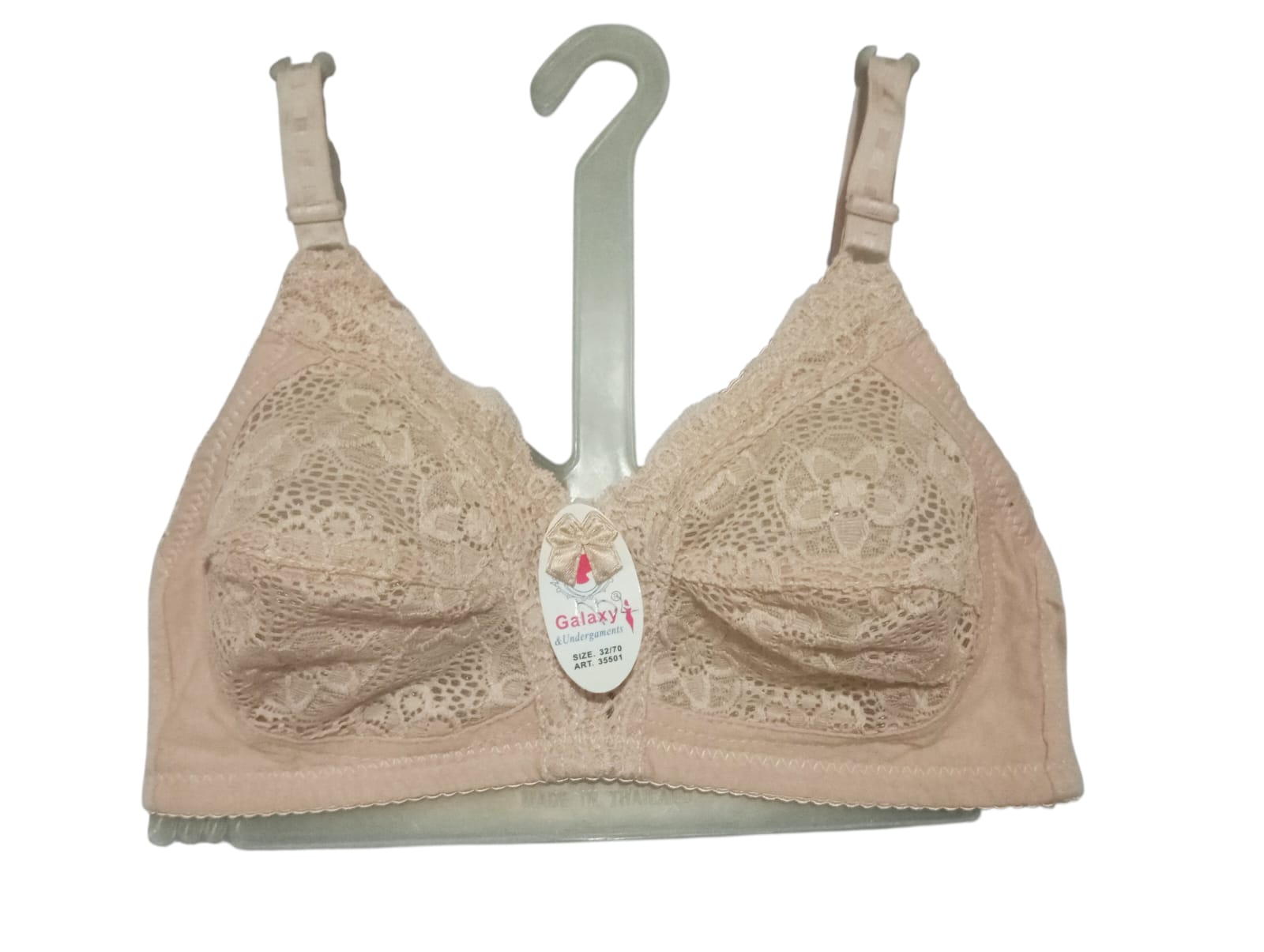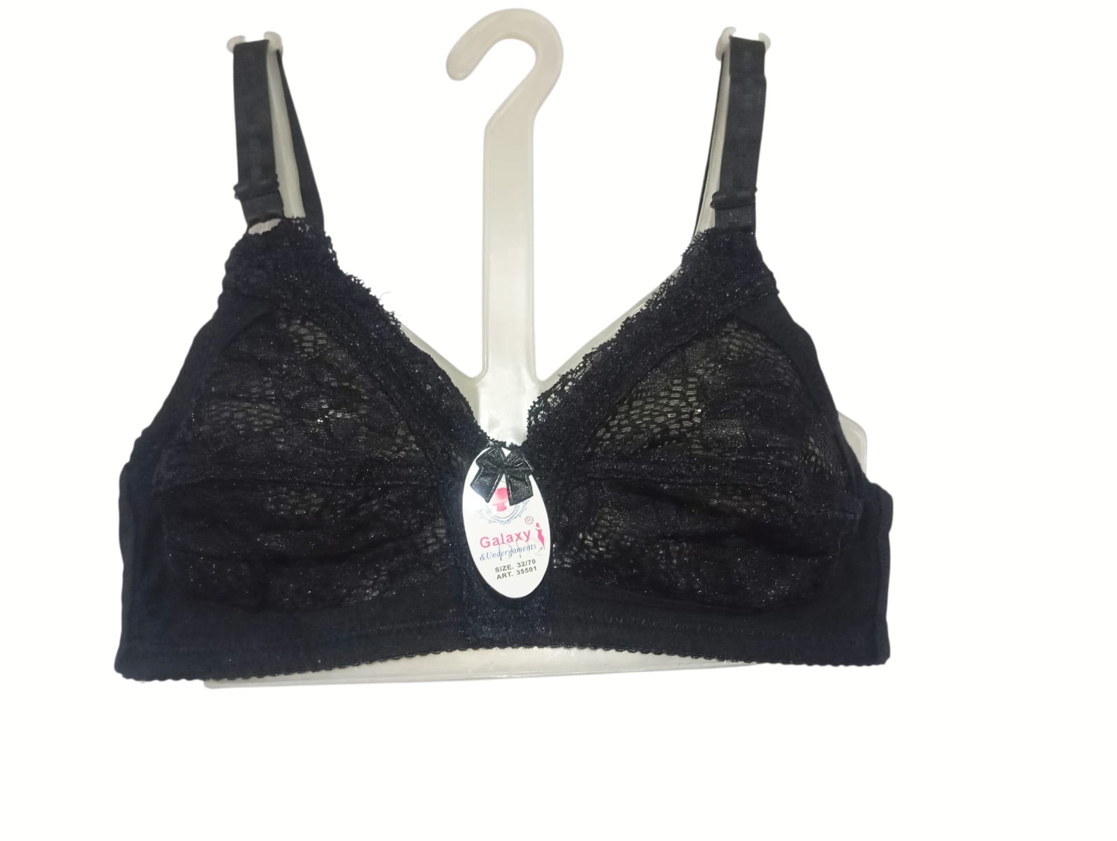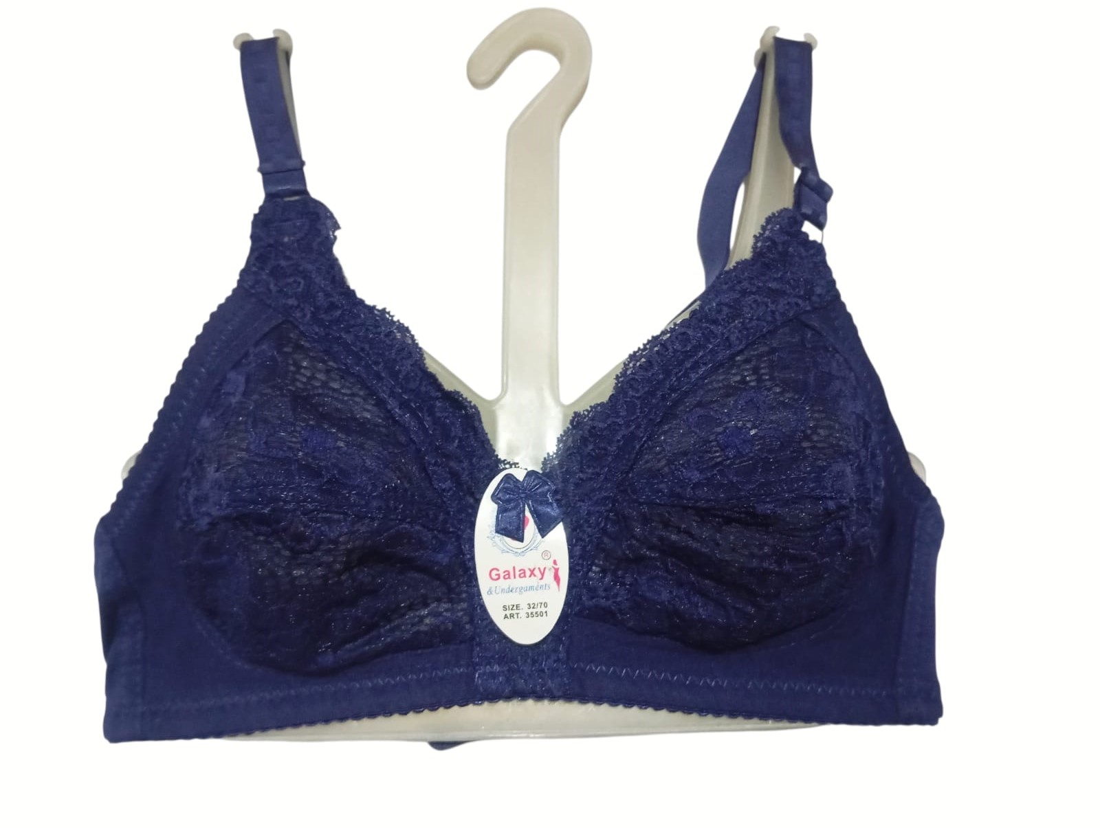 Elevate your lingerie collection with the Galaxy Lingerie Lace Bra (Art: 35001). Designed with intricate floral lace patterns, this piece blends sophistication with comfort. The soft lace cups provide gentle support while maintaining a breathable, lightweight feel, making it perfect for daily wear or special occasions. Adjustable shoulder straps allow for a customized fit, while the refined craftsmanship ensures durability and style. Whether you’re looking to add a touch of elegance to your everyday essentials or seeking a statement piece for intimate moments, this bra delivers confidence, comfort, and timeless beauty.